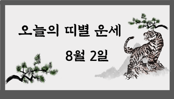 8월 2일 화요일 오늘의 운세 전해드립니다^^ 운세도 좋고 나쁨이 있기 때문에 재미로 보시는 것을 권장해드립니다. 오늘 자신의 운세가 맑은 하늘과 같을지, 흐린 하늘과 같아 우산을 챙겨 미리 대비를 해야 할지 궁금하시다면 아래 해당하는 띠를 선택하시면 확인이 가능합니다.