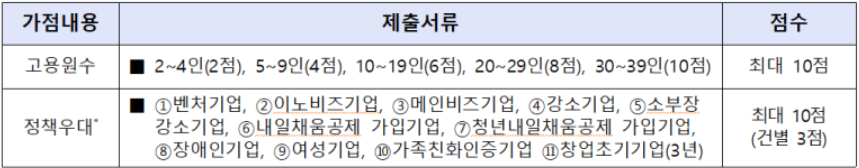 ※ 서류평가 가점항목 및 점수 (최대 20점)