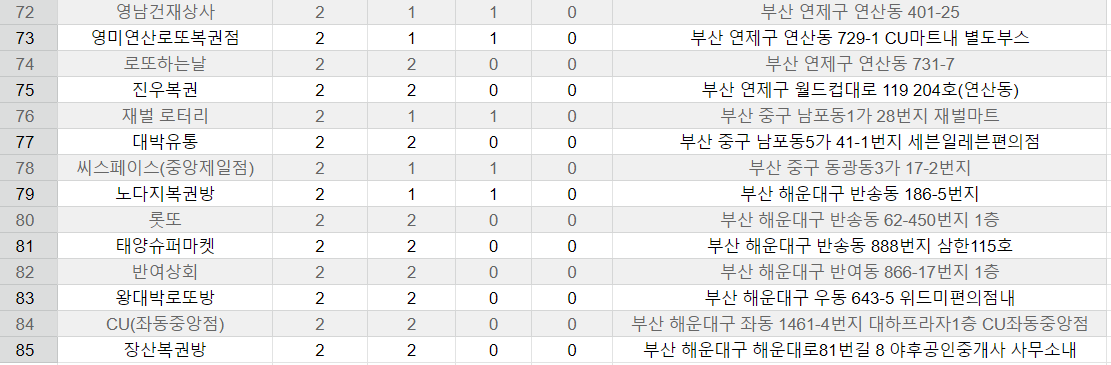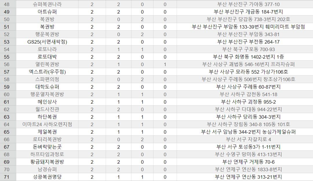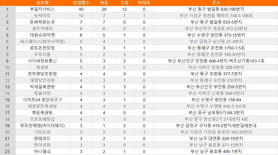 🎁1등을 2회 이상 배출한 부산 로또 명당 판매점 순위입니다.