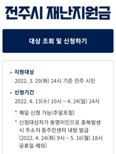 전주시민 분들께서는 기한 내에 조건을 잘 살피셔서 편하신 방법으로 재난지원금을 신청하셔서 혜택을 누리시길 바랍니다.