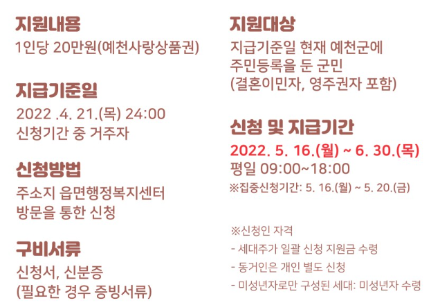 - 지급기준일 이후 타 자치단체로 전출한 자 (단, 신청기간 내 예천군으로 전입 시에는 지급대상)