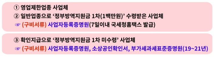✅ 영업제한업종 사업체 및 일반업종으로 '정부 방역지원금 1차 (100만 원)' 지급받은 사업체