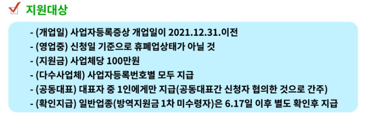 ✅ 확인 지급으로 '정부 방역지원금 1차 미수령' 사업체