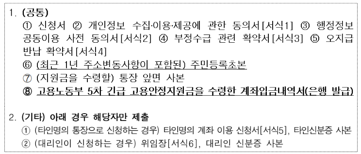 - 고용노동부 5차 긴급 고용안정 지원금 시행 공고에 따라 고용노동부 지원금 (기존 50만 원, 신규 100만 원)을 수급한 자