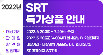 거리두기 해제로 많은 분들께서 여행을 계획하고 계시는데요. srt에서 여행수요에 맞추어 승차권 할인 행사를 진행한다 합니다. 기간 한정 및 선착순으로 진행되기 때문에 빠른 예매가 필요할 것 같습니다. 최대 25%까지 가능한 srt할인 방법 알아보겠습니다.