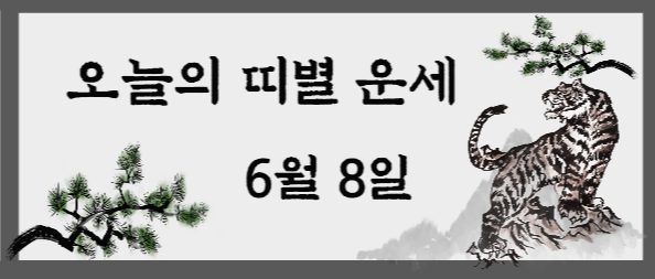 이상 6월 8일 수요일 오늘의 운세였습니다. 운세가 좋지 않아도 오늘 하루 마음가짐, 몸가짐을 조심하셔서 무탈한 하루가 되시길 바랍니다.