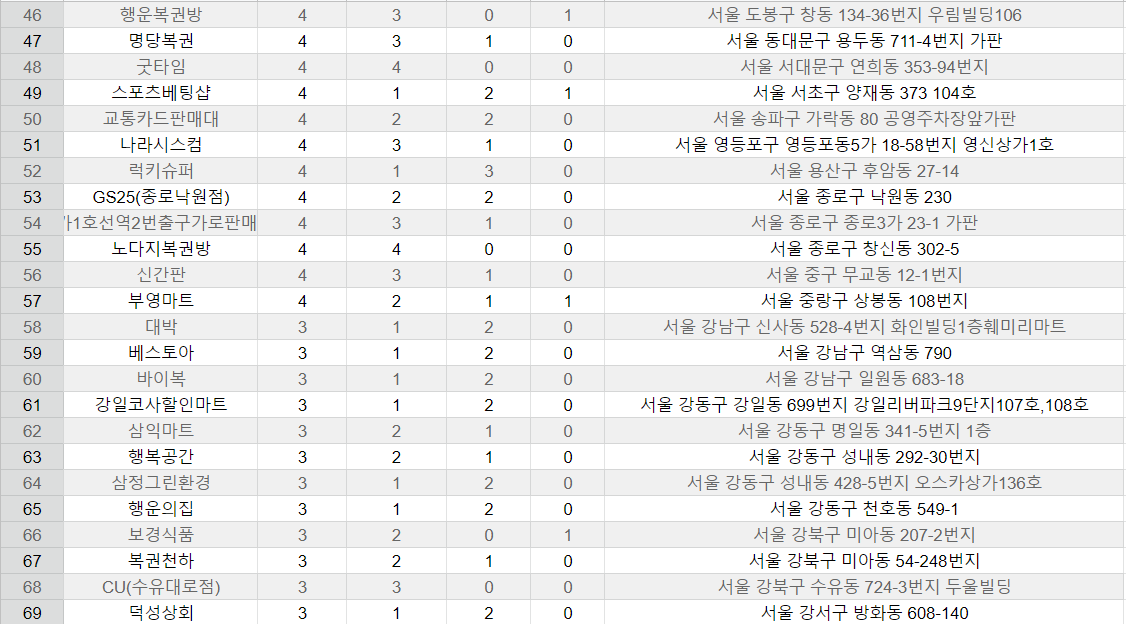 | 서울 로또명당 | 경기 로또명당 | 인천 로또명당 |